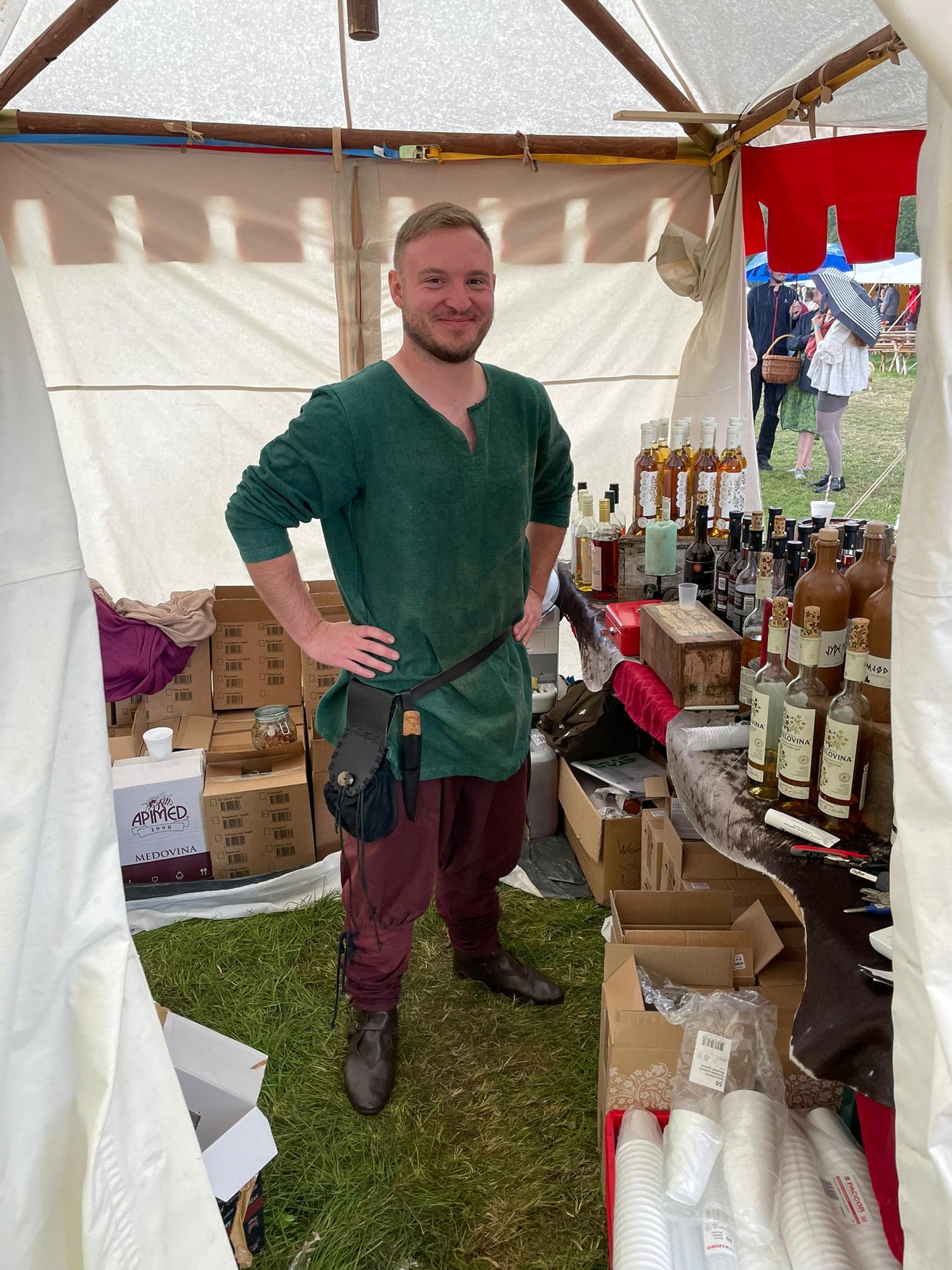Egal ob beim Umbau der Lagerräume, beim Transport von Met, beim Einräumen von Regalen oder ganz einfach für die Unterstützung am Verkaufsstand. Reto gehört für viele Besucher von Mittelaltermärkten so zum Met Keller wie der Wikinger zu seinem Rundschild.